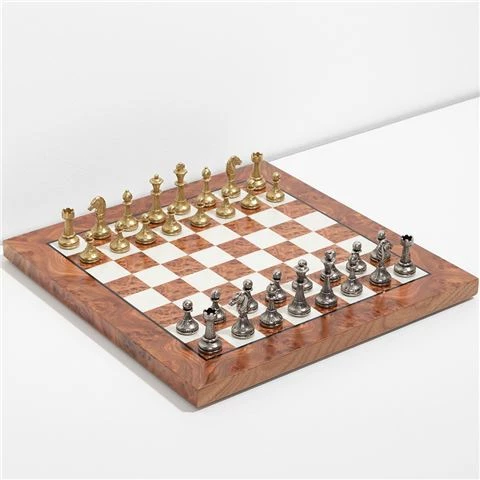 Metal Chess Men Elm Chess Board Briar Wood Chessboard Set from Italfama is 100% made in Italy, with hand made Chess board and Metal pieces.