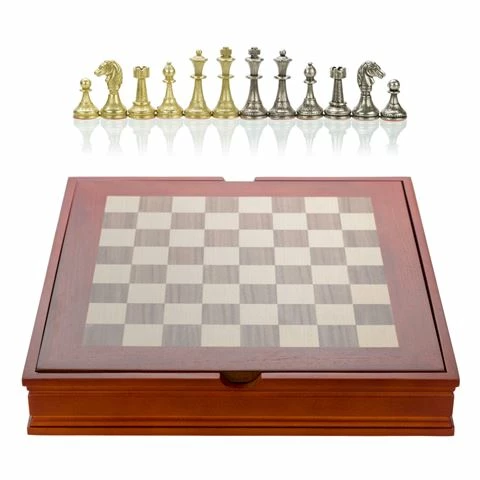 Appreciated by players all over the world, Italfama chess sets are not only lovely to play with, but also make wonderful gifts and refined décor for the home. Crafted in walnut and maple woods, this exquisite board includes storage for the gold- and silver-toned metal chess pieces, for a gorgeous way to play the game.