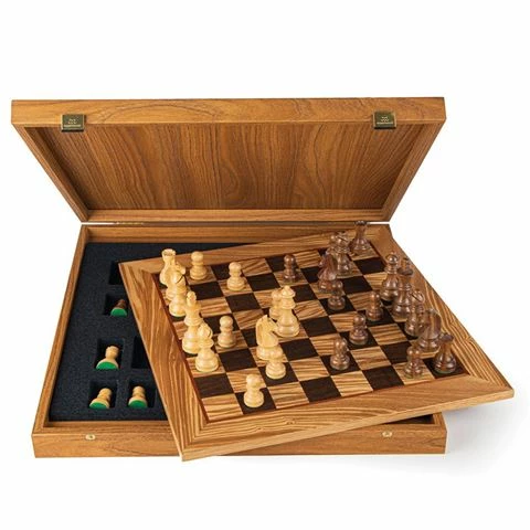 - Chessboard is made from olive burl and oak