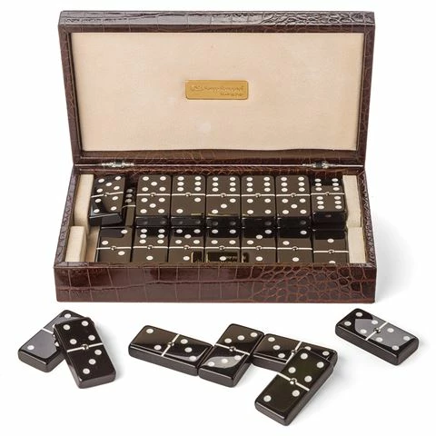 With Renzo’s Brown Crocodile Print Leather Domino Set, you’ll be mixing it with the high rollers. These beautiful dominoes are made from sleek, black resin and sure to last you for years to come. Presented in a beautiful hand-crafted leather case, they make the perfect little good luck charms to take with you when you’re playing with the best.